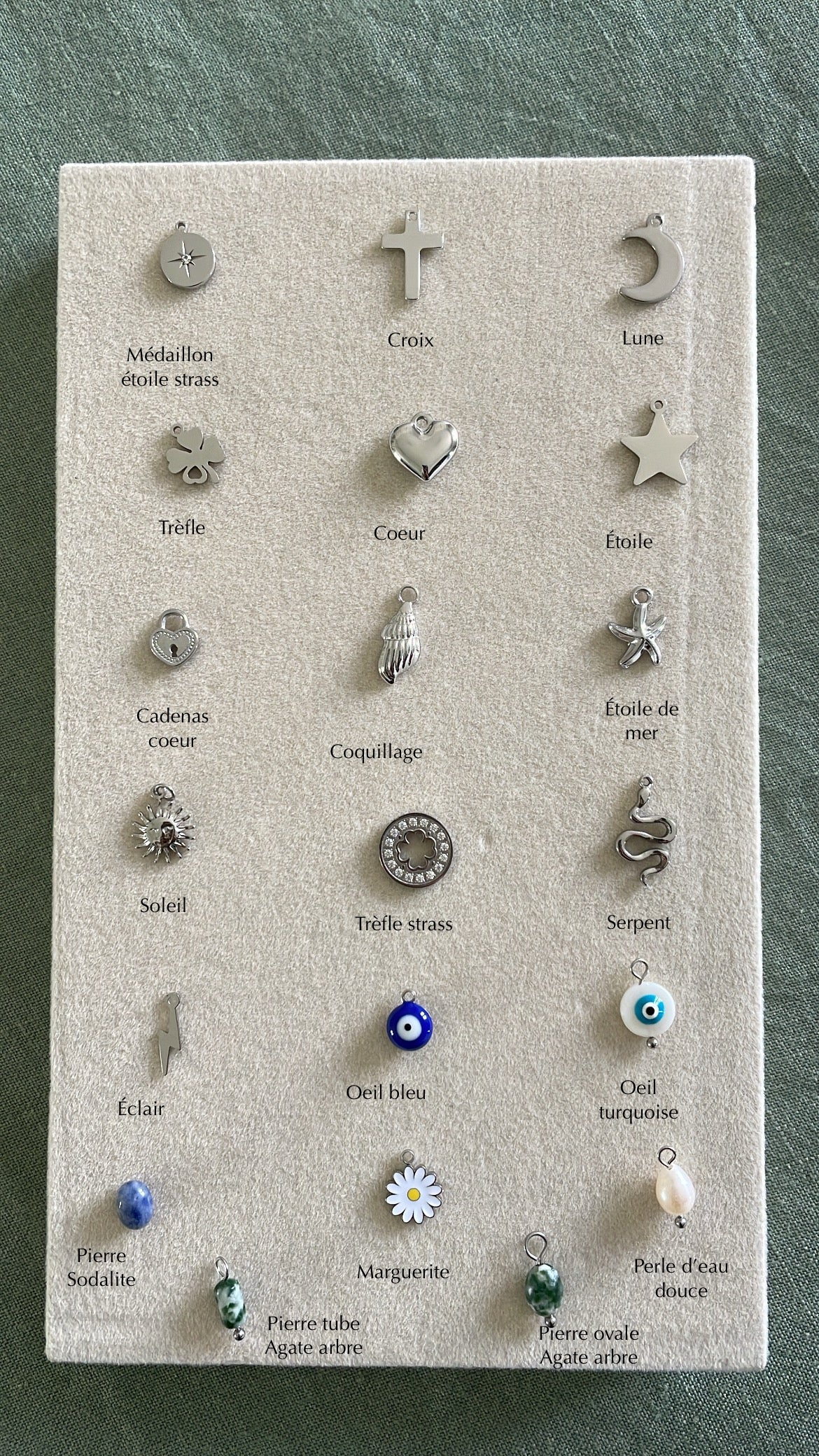 Nos bagues breloques personnalisables offrent une touche unique à chaque main. Fabriquées à partir de matériaux de qualité, tu peux choisir la breloque à y accrocher dessus, selon ta personnalité profonde. Idéales pour des cadeaux ou pour compléter vos tenues, ces bagues allient élégance et individualité. Un bijou unique et original, tu peux également choisir la monture de ton choix, large, fine, lisse, striée… il y en a pour tous les goûts ! Ces bagues sont réglables, elles s’adapteront donc parfaitement à chaque main.