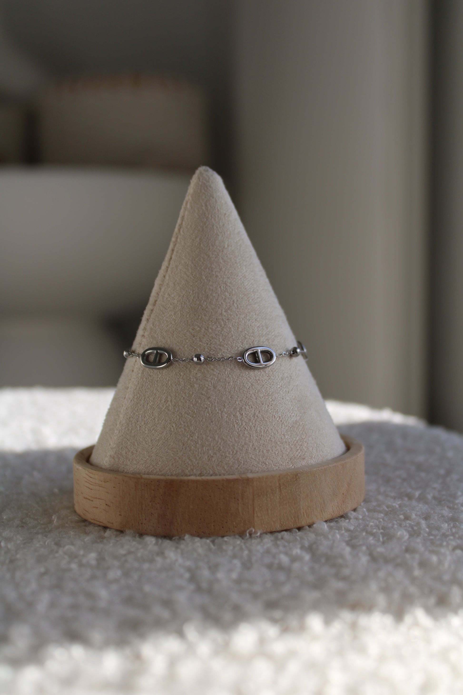 Ce bracelet en acier inoxydable, disponible en versions dorée et argentée, allie modernité et élégance grâce à sa chaîne ornée de délicates boules. Son design est sublimé par trois connecteurs lumineux qui captent et reflètent la lumière, apportant une touche raffinée et éclatante. Résistant et hypoallergénique, ce bijou est parfait pour un usage quotidien ou pour rehausser vos tenues lors d’occasions spéciales. Polyvalent et intemporel, il s’adapte à tous les styles et se porte seul ou en superposition pour un effet encore plus chic.
