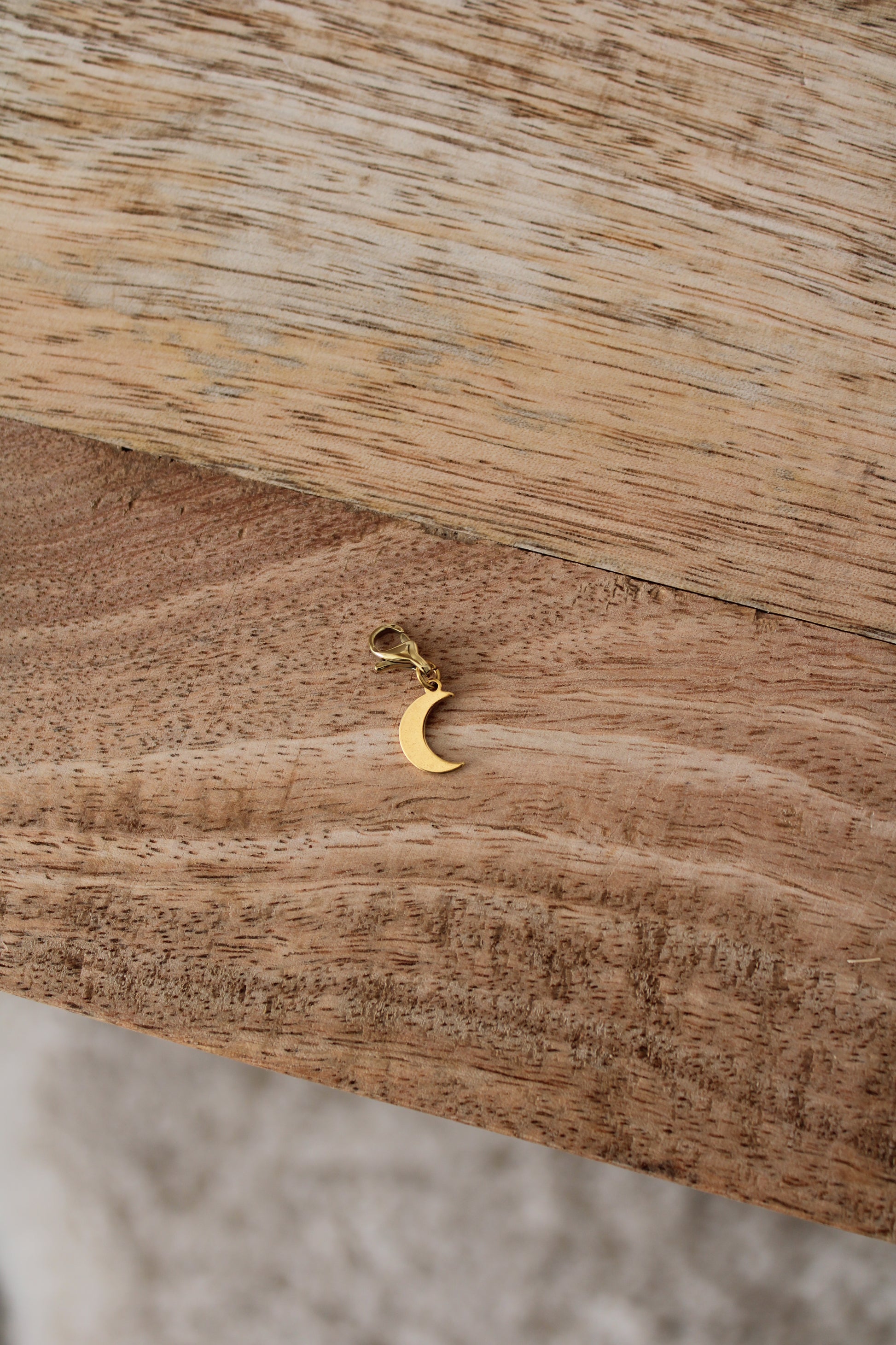 Charm lune en acier inoxydable doré. Son fermoir pratique permet de l’attacher facilement à un collier ou bracelet et de le retirer en toute simplicité.