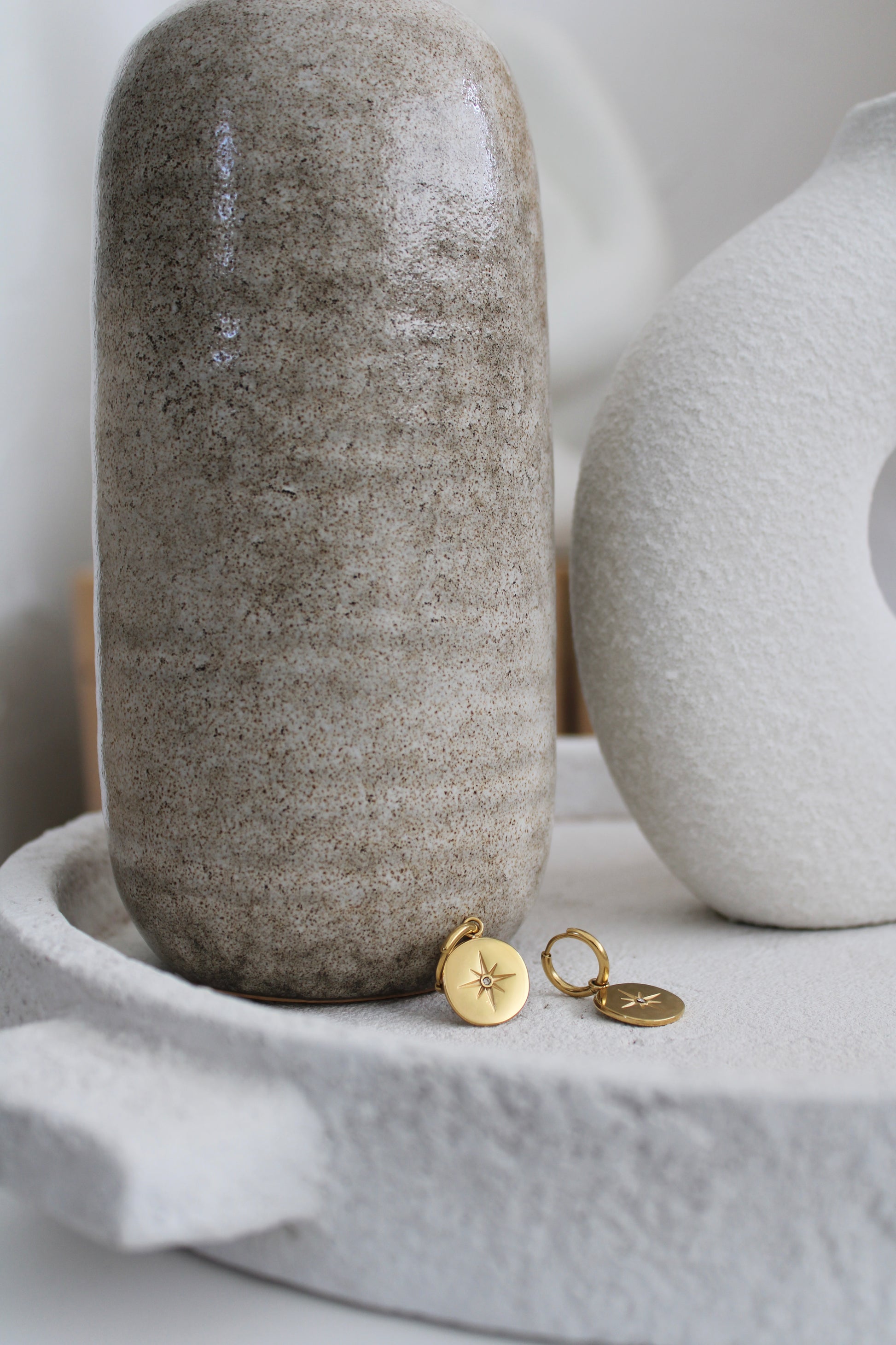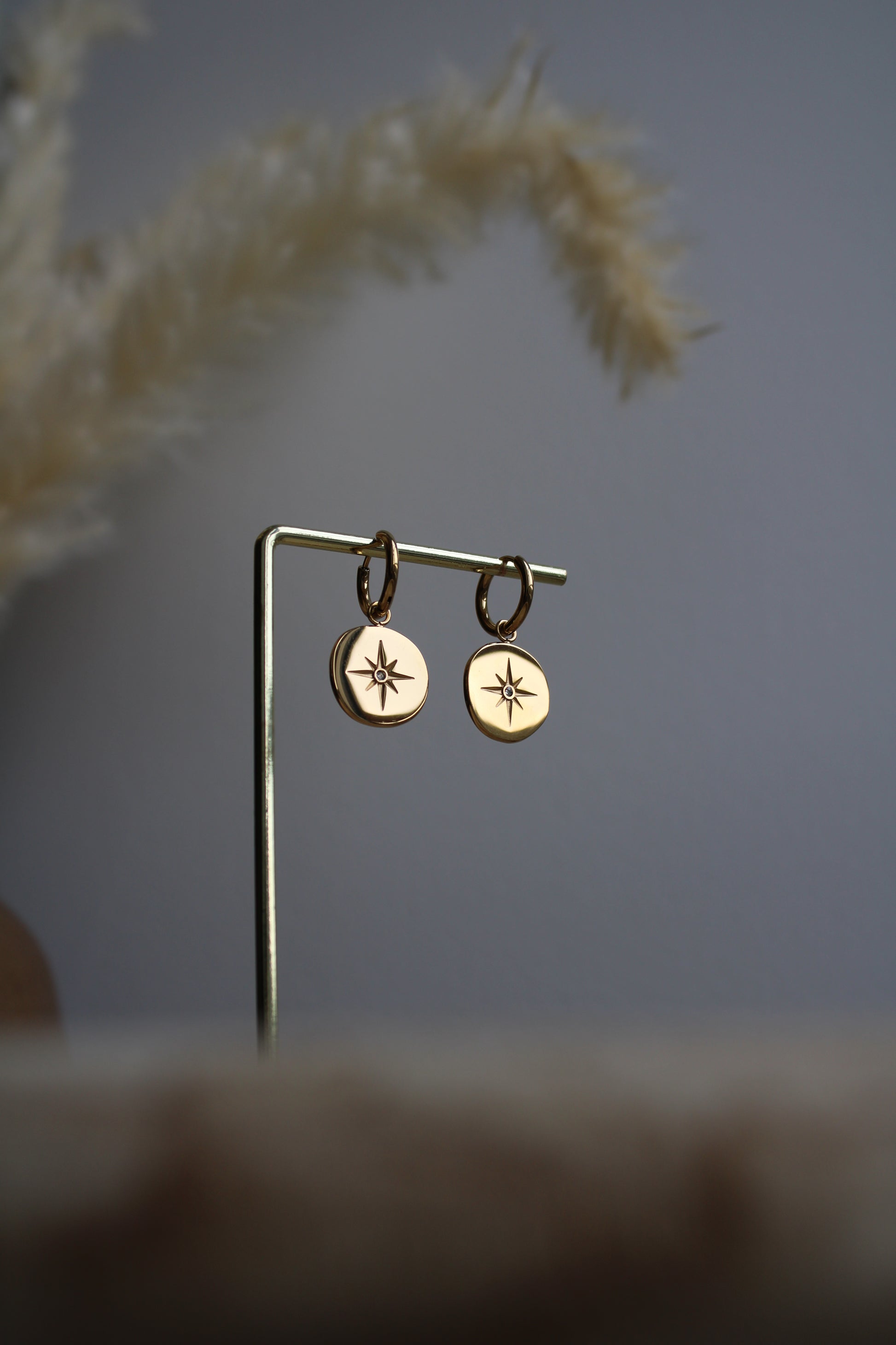 Ces créoles en acier inoxydable doré sont sublimées par des médaillons gravés d’étoiles à 8 branches, chacune ornée d’un strass scintillant en leur centre. L’alliance de la brillance de l’acier doré et des étoiles gravées confère à ce bijou une allure à la fois chic et céleste. Les strass apportent une touche de glamour supplémentaire, capturant la lumière à chaque mouvement. Résistantes et hypoallergéniques, ces créoles sont parfaites pour ajouter une touche d’élégance étoilée à vos tenues quotidiennes ou vos occasions spéciales.