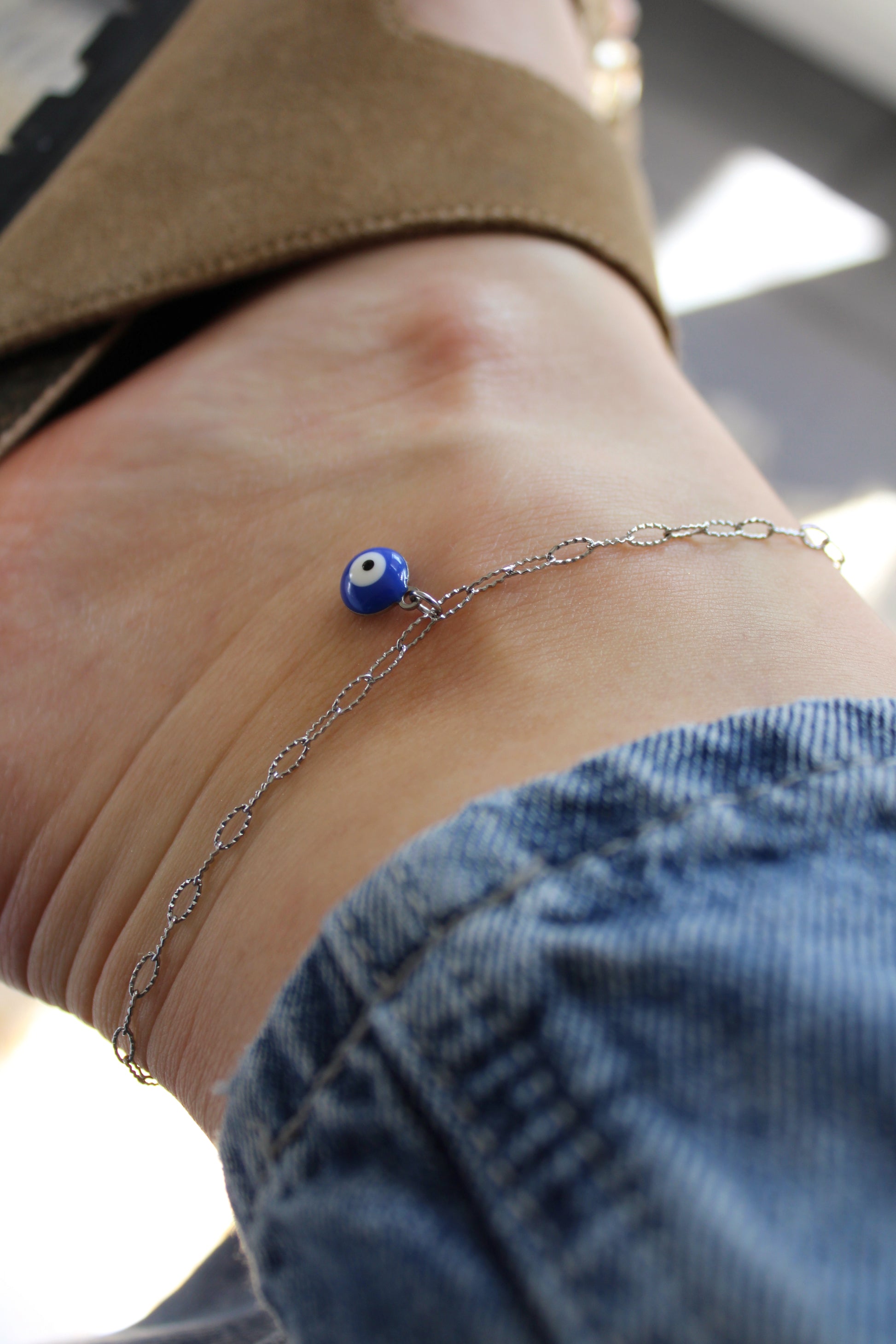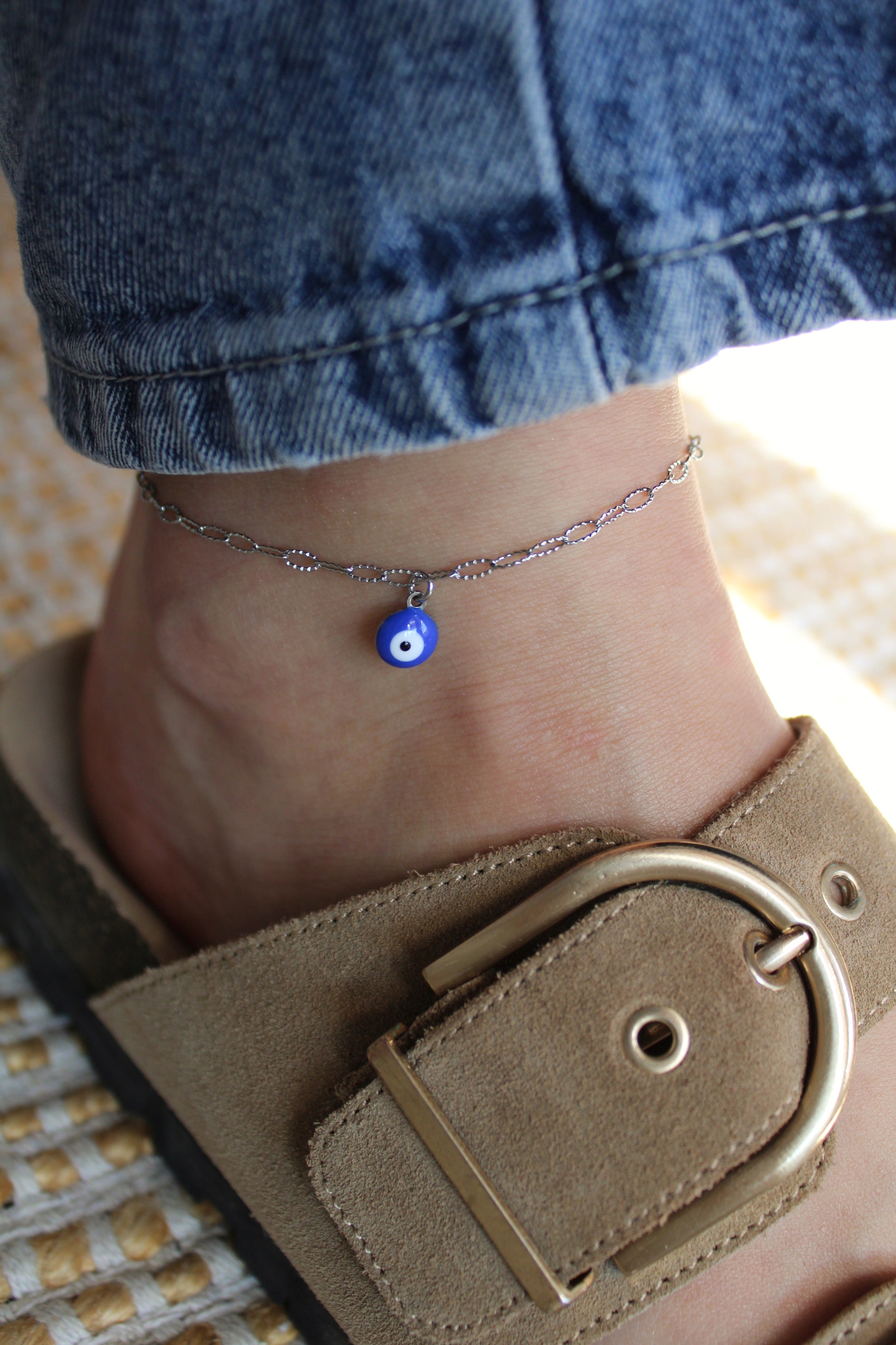 Une fine chaîne ovale striée en acier inoxydable argenté, sublimée d’un œil de protection bleu. Résistant à l’eau, il allie minimalisme et symbolique pour un été stylé et protégé.